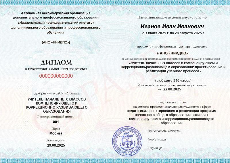 Учитель начальных классов в компенсирующем и коррекционно-развивающем образовании: проектирование и реализация учебного процесса (340ч)