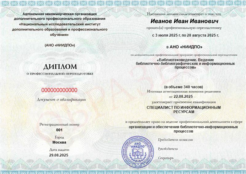 Да, документы оформляются на бланках с защитой от подделок, заполняются на русском языке, в них ставится печать АНО «НИИДПО».