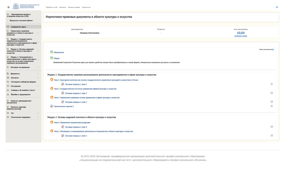 Заочное обучение с применением дистанционных* образовательных технологий проходит в системе дистанционного обучения (СДО). Обучающиеся могут изучать лекции, смотреть вебинары онлайн и в записи, выполнять практические задания, проходить итоговый контроль знаний.