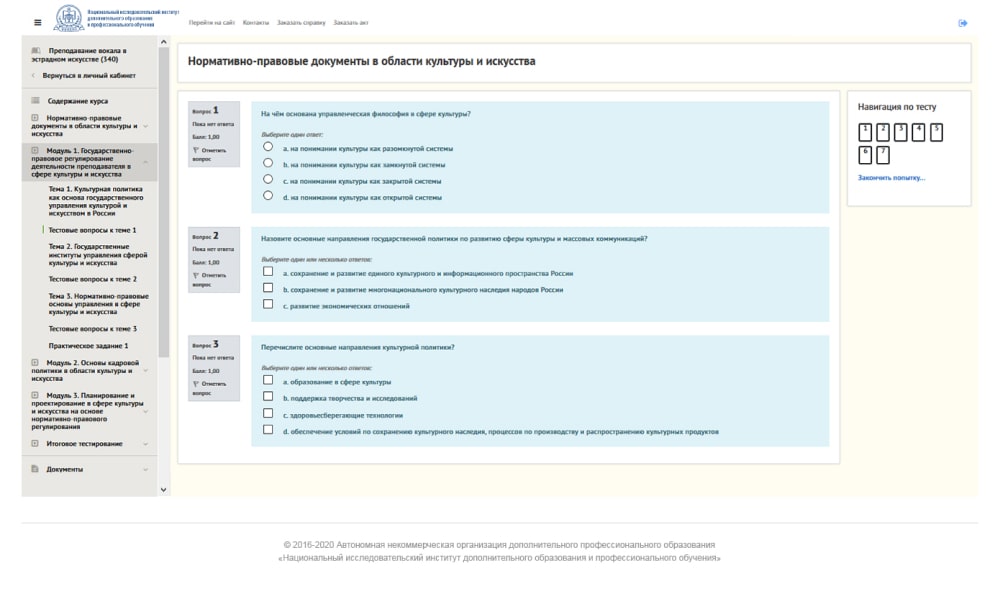 1. Текущий контроль успеваемости после каждой темы проходит в форме тестирований. Эти тесты необходимы для закрепления пройденного материала при переходе к следующей теме.