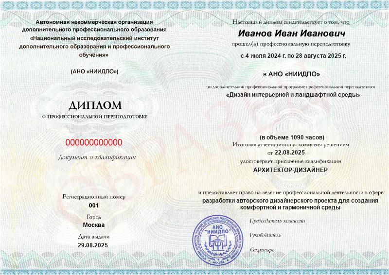 Да, документы оформляются на бланках с защитой от подделок, заполняются на русском языке, в них ставится печать АНО «НИИДПО».