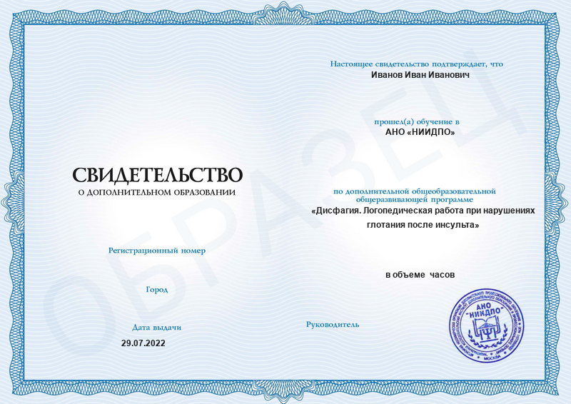 Свидетельство о дополнительном образовании. Вышлем его на вашу электронную почту в течение 14 рабочих дней после окончания обучения.
