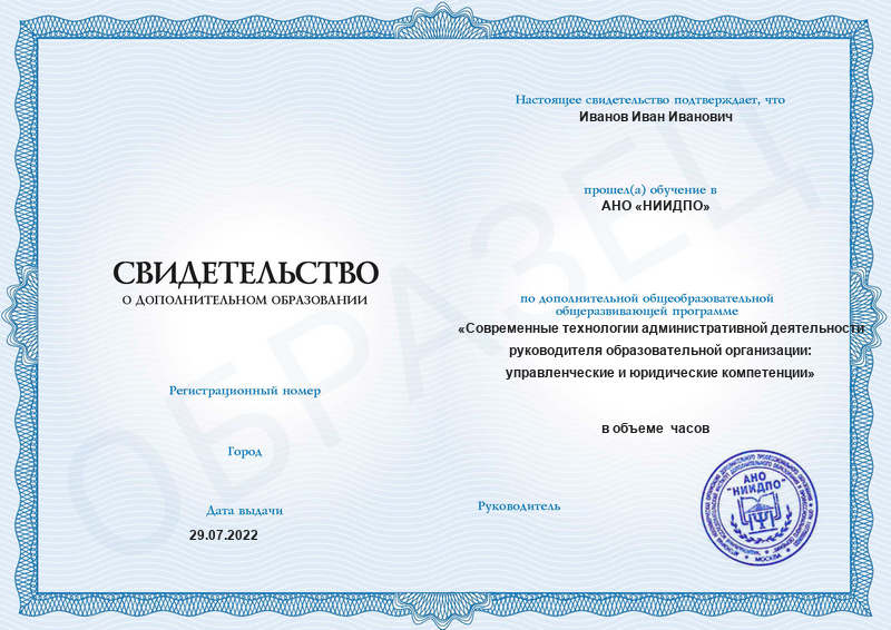 АНО «НИИДПО» – автономная некоммерческая организация, которая обладает теми же полномочиями, что государственные образовательные учреждения. Департамент образования города Москвы выдал АНО «НИИДПО» лицензию на осуществление образовательной деятельности. Проверить наличие разрешительной документации можно на сайте Рособрнадзора в разделе «Сводный реестр лицензий». Для этого достаточно ввести ИНН 7724318601.