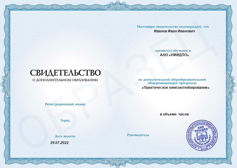 Учебный план дополнительной общеобразовательной программы «Практическое кинезиотейпирование»