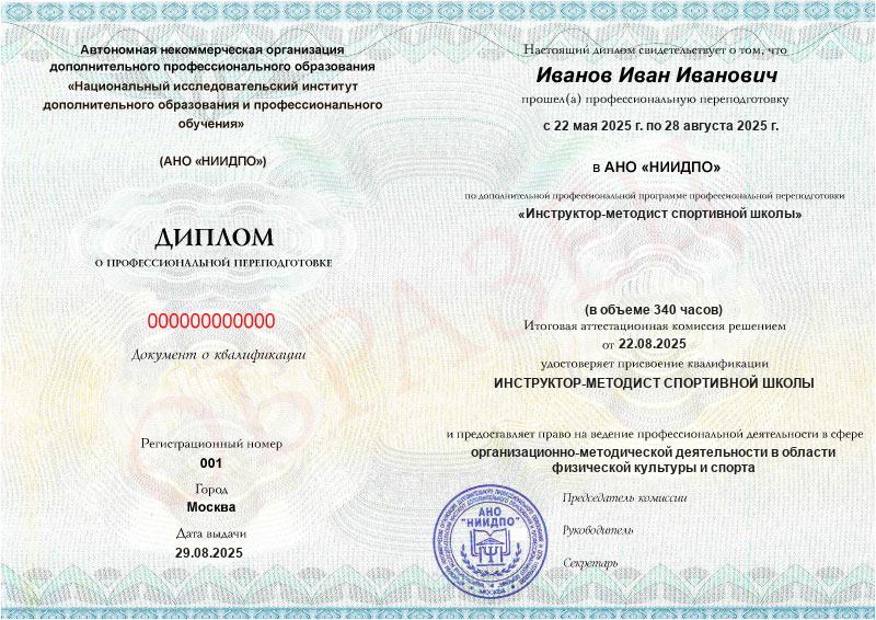 Обзор программы профессиональной переподготовки «Инструктор-методист спортивной школы» с присвоением квалификации «Инструктор-методист спортивной школы»
