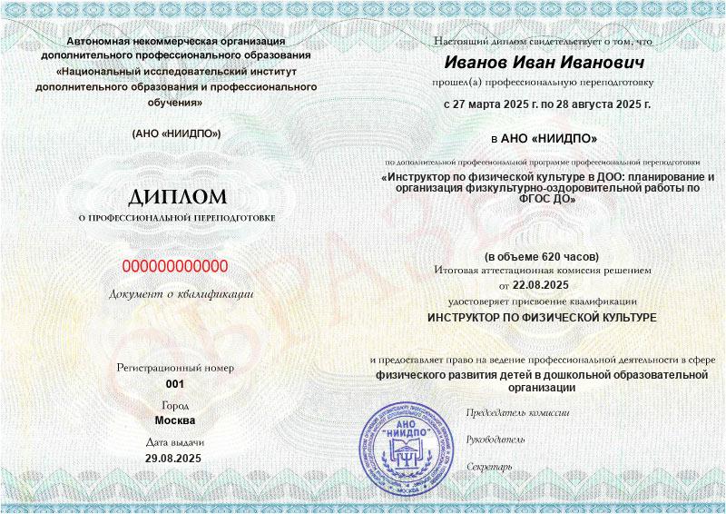 Обзор программы профессиональной переподготовки «Инструктор по физической культуре в ДОО: планирование и организация физкультурно-оздоровительной работы по ФГОС ДО» с присвоением квалификации «Инструктор по физической культуре»