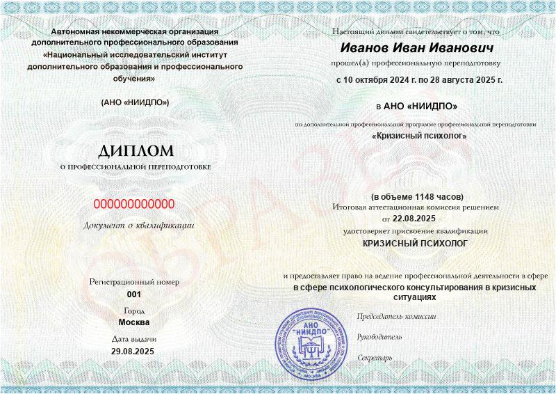 - Квалификация: Кризисный психолог