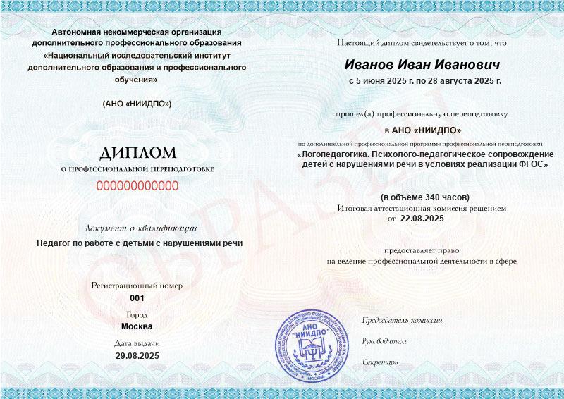 Я обучалась по специальности «Логопедагогика. Психолого-педагогическое сопровождение детей с нарушениями речи в условиях реализации ФГОС». Моё обучение длилось 3 месяца (340 часов). Хочу выразить искреннюю признательность вашему учебному заведению за предоставленную возможность пройти очередной курс повышения квалификации. Это отличная возможность получить новые знания без отрыва от дома и работы. Учебный процесс поставлен очень грамотно, блоки лекций и дополнительные материалы содержат ответы на все вопросы последующего тестирования. Желаю дальнейшего развития и процветания! Обязательно порекомендую своим коллегам обучение в вашем учебном заведении! Я получил(а) много новых знаний и навыков благодаря этому обучению. Я получила много новой информации, и потребуется время на обработку такой насыщенной программы. Хочу пожелать новым слушателям быть активными участниками вебинаров — это вам пригодится в вашей работе! Спасибо большое за оперативность обратной связи с кураторами!