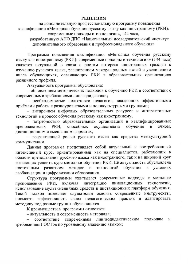 Обзор программы повышения квалификации «Методика обучения русскому языку как иностранному (РКИ): современные подходы и технологии»