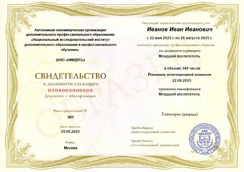 Получите профессию младшего воспитателя, научитесь следить за распорядком дня, играть с детьми, обеспечивать санитарное состояние помещений и оборудования за 3 месяца.