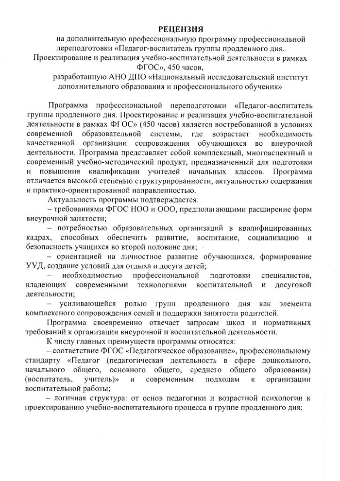 Обзор программы профессиональной переподготовки «Педагог-воспитатель группы продленного дня. Проектирование и реализация учебно-воспитательной деятельности в рамках ФГОС» с присвоением квалификации «Воспитатель группы продленного дня»