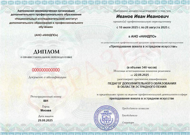 Обзор программы профессиональной переподготовки «Преподавание вокала в эстрадном искусстве» с присвоением квалификации «Педагог дополнительного образования в области эстрадного пения»