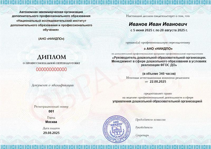 Студент, желающий поступить в АНО «НИИДПО», должен предоставить справку из образовательной организации. Независимо от срока окончания обучения по программе дополнительного образования, диплом о профпереподготовке выдаётся только после предъявления документа о получении среднего профессионального или высшего образования.