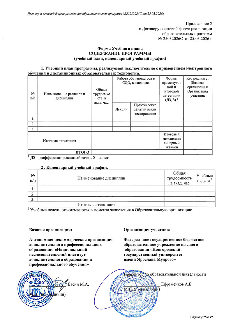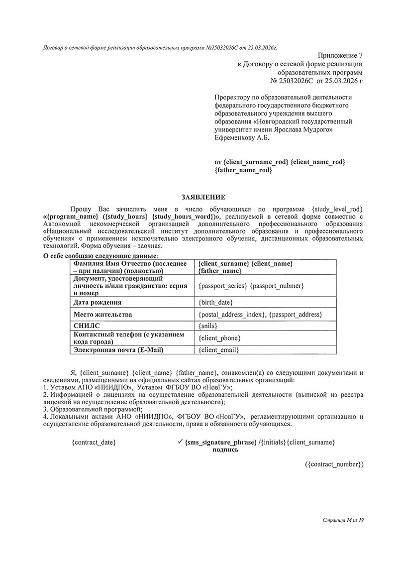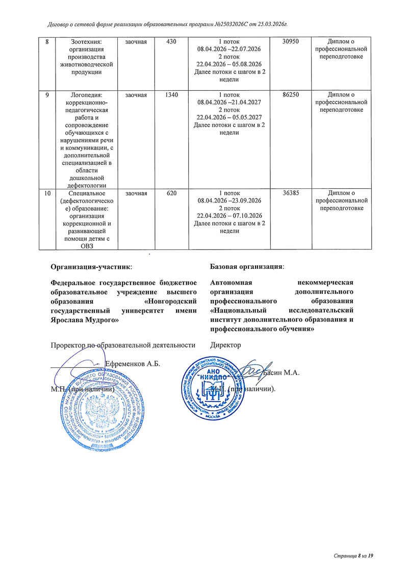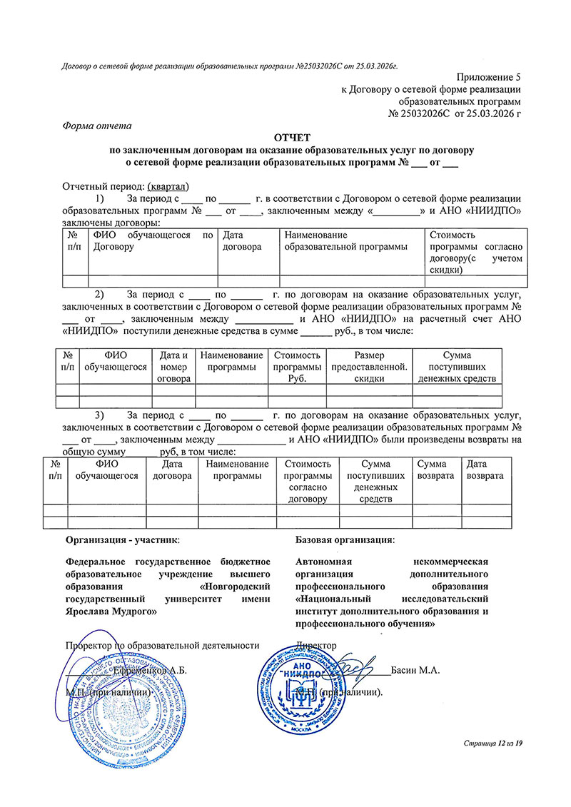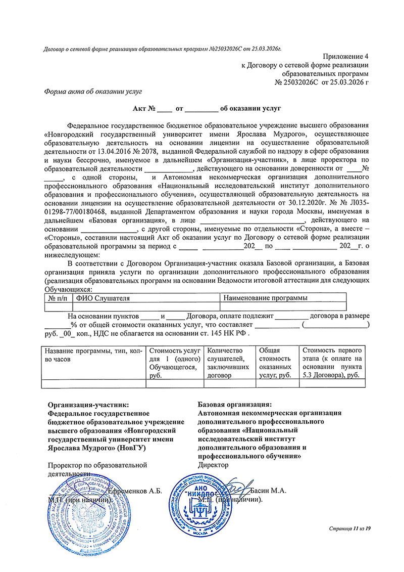 Договор между НовГУ и АНО «НИИДПО»