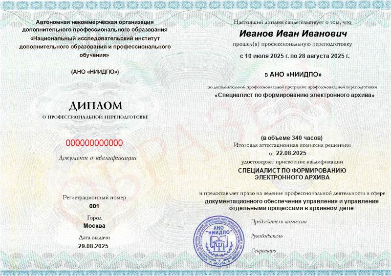 - Квалификация: Специалист по формированию электронного архива