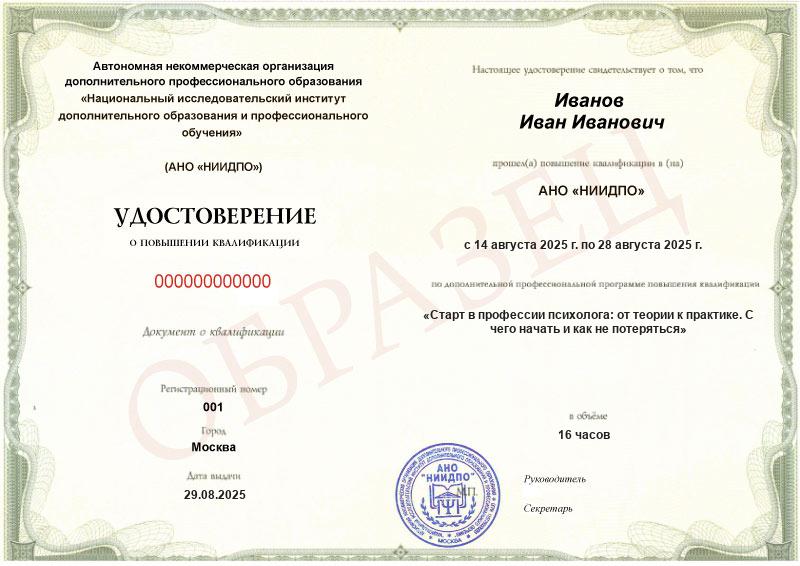 Да, выданное АНО «НИИДПО» удостоверение предоставляет вам право на ведение профессиональной деятельности в соответствии с квалификацией.