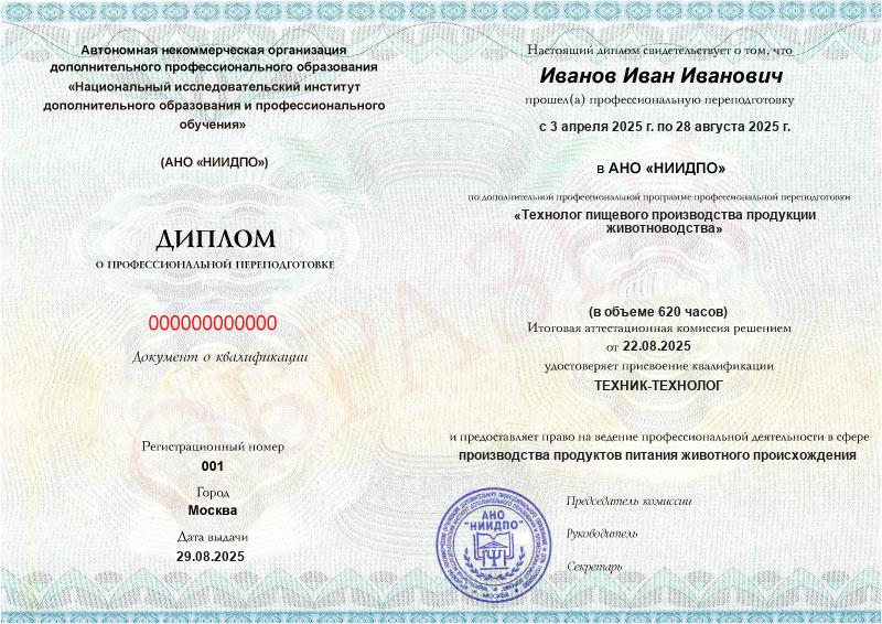 Технолог пищевого производства продукции животноводства (620ч)