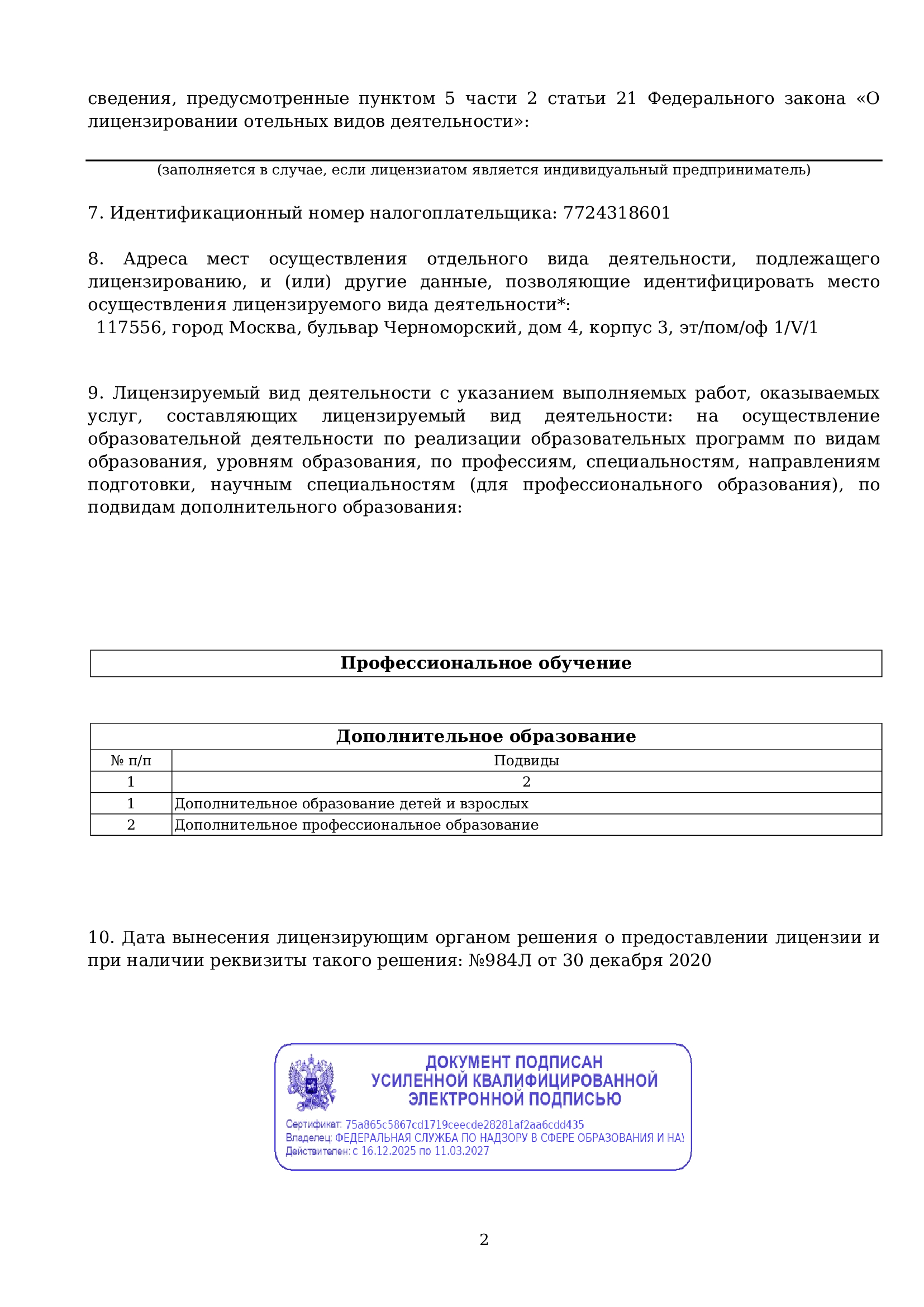 Дата предоставления лицензии: 30 декабря 2020 г.