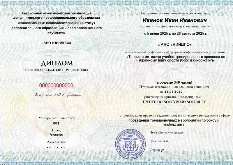 Обзор программы профессиональной переподготовки «Теория и методика учебно-тренировочного процесса по избранному виду спорта (бокс и кикбоксинг)» с присвоением квалификации «Тренер по боксу и кикбоксингу»