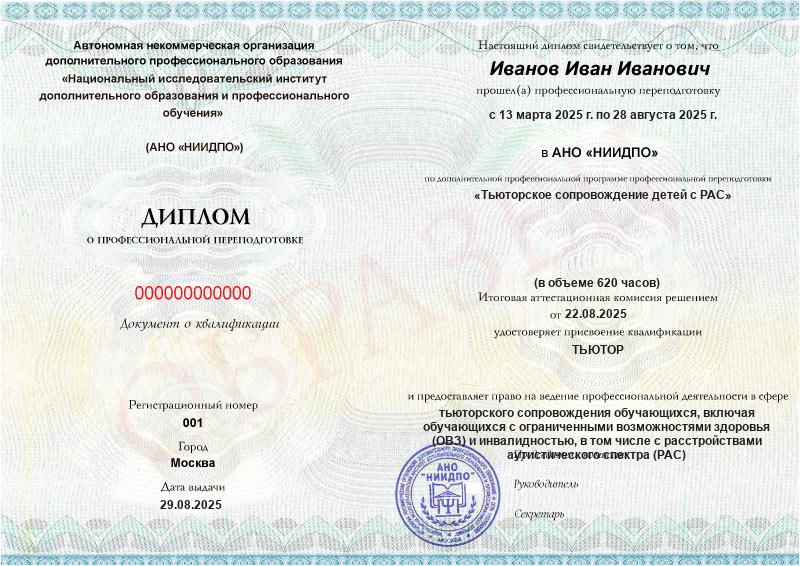Обзор программы профессиональной переподготовки «Тьюторское сопровождение детей с РАС» с присвоением квалификации «Тьютор»