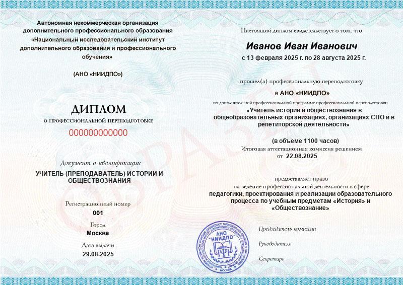 Учитель истории и обществознания в общеобразовательных организациях, организациях СПО и в репетиторской деятельности (1100ч)