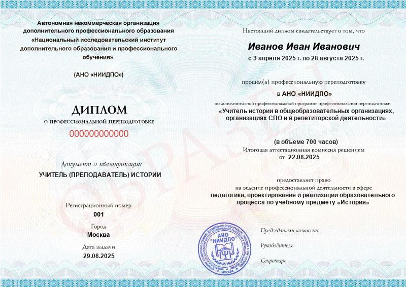 Учитель истории в общеобразовательных организациях, организациях СПО и в репетиторской деятельности (700ч)