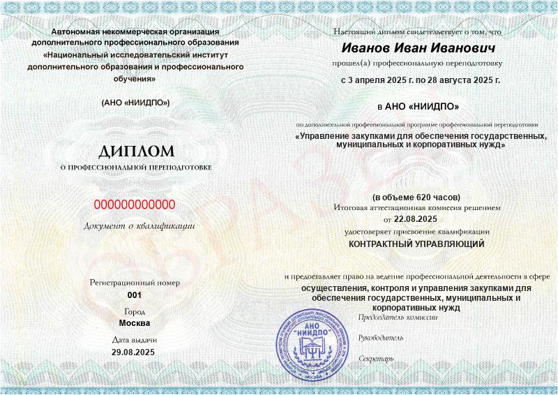 Студент, желающий поступить в АНО «НИИДПО», должен предоставить справку из образовательной организации. Независимо от срока окончания обучения по программе дополнительного образования, диплом о профпереподготовке выдаётся только после предъявления документа о получении среднего профессионального или высшего образования.