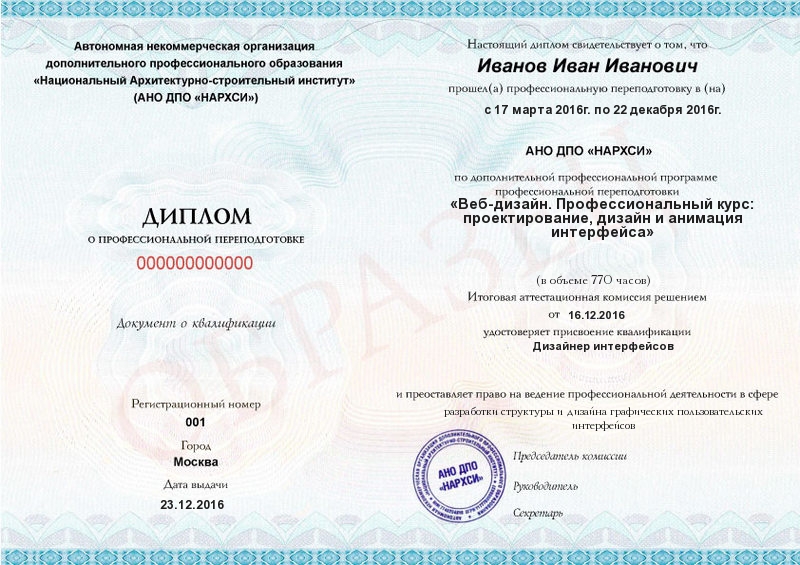 - Квалификация: Дизайнер интерфейсов