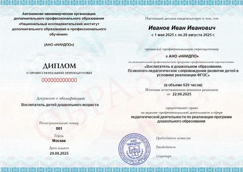 Студент, желающий поступить в АНО «НИИДПО», должен предоставить справку из образовательной организации. Независимо от срока окончания обучения по программе дополнительного образования, диплом о профпереподготовке выдаётся только после предъявления документа о получении среднего профессионального или высшего образования.