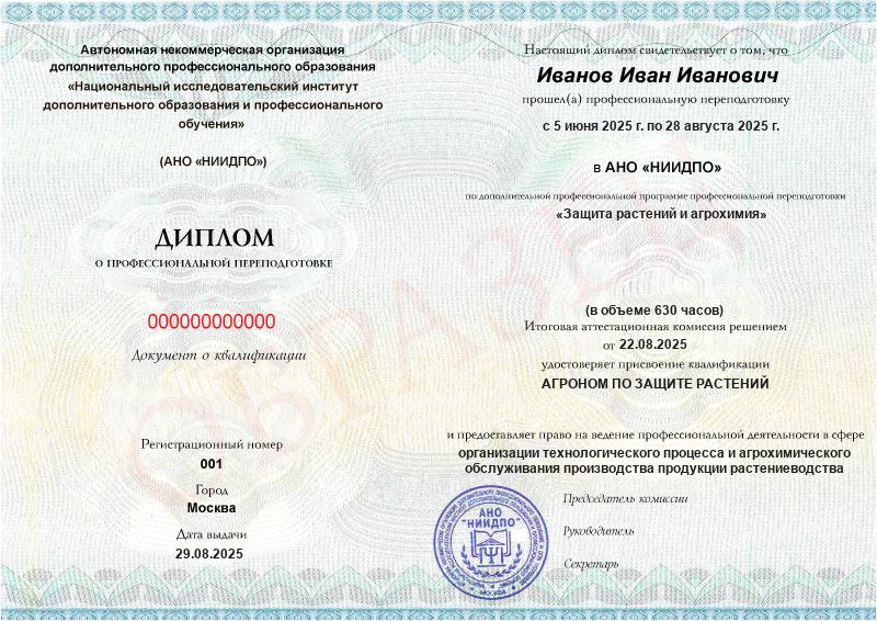 - Квалификация: Агроном по защите растений